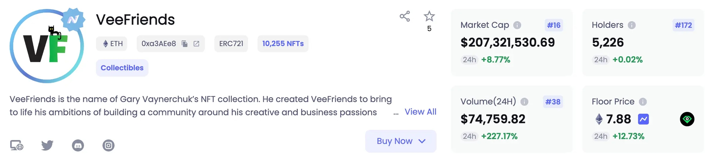 Gary Vee is an entrepreneur and famous internet figure. He was one of the most outspoken supporters of the NFT revolution from the beginning and launched an NFT collection called VeeFriends in May 2021. His role as an entrepreneurship advisor, life coach, and internet personality complemented perfectly the utilities assigned to the tokens of the VeeFriends collection. While the VeeFriendsarrow-up-right NFTs represent for the major part access to Gary’s community, depending on the rarity, they could represent tickets for conferences, access to one on one meetings, and unique possibilities tailored to the investors’ interest.
