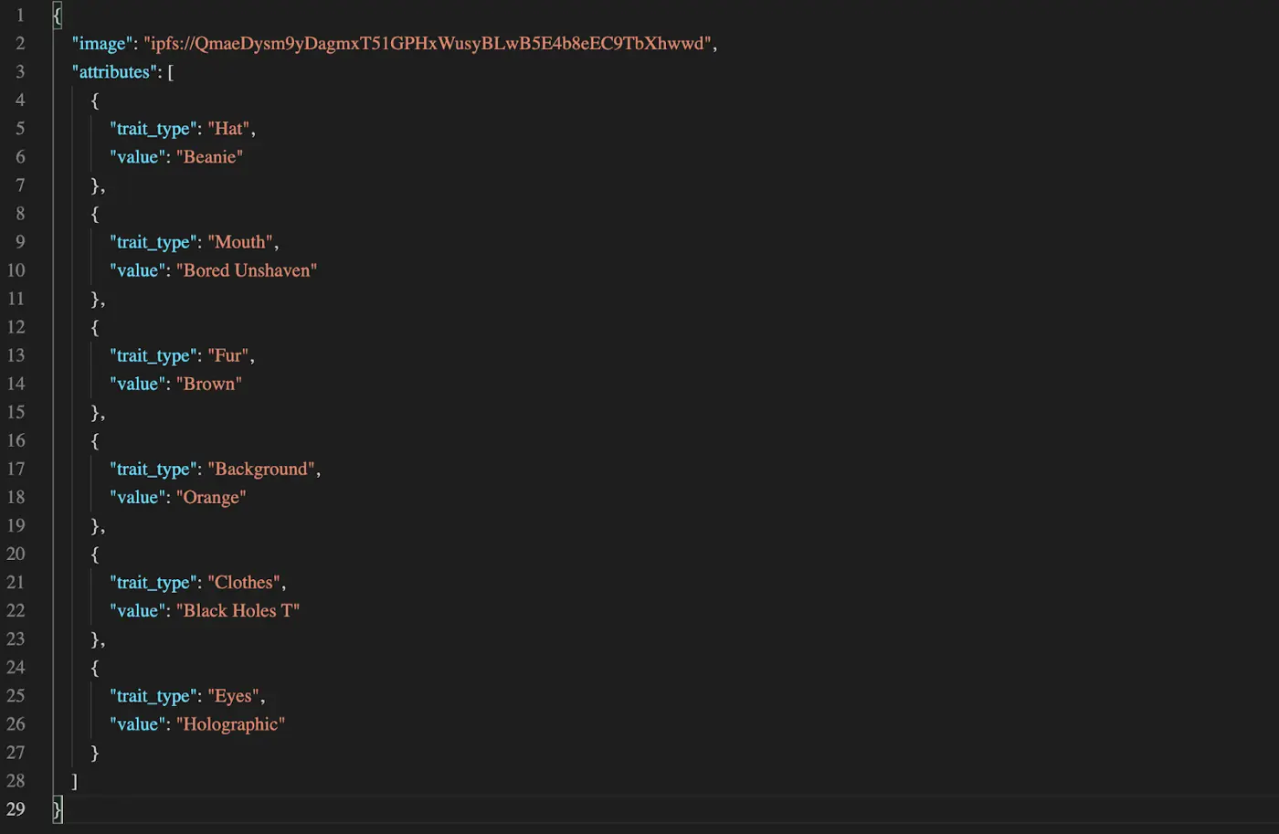 This is the name that the project chooses for an NFT, after that, There’s the NFT’s unique ID marked with a “#”. This ID is the NFT’s fingerprint. Under the hood, in the smart contract a link is generated from this ID that points to some metadata about the NFT. We collect the metadata of every NFT from the blockchain and present it to our users.